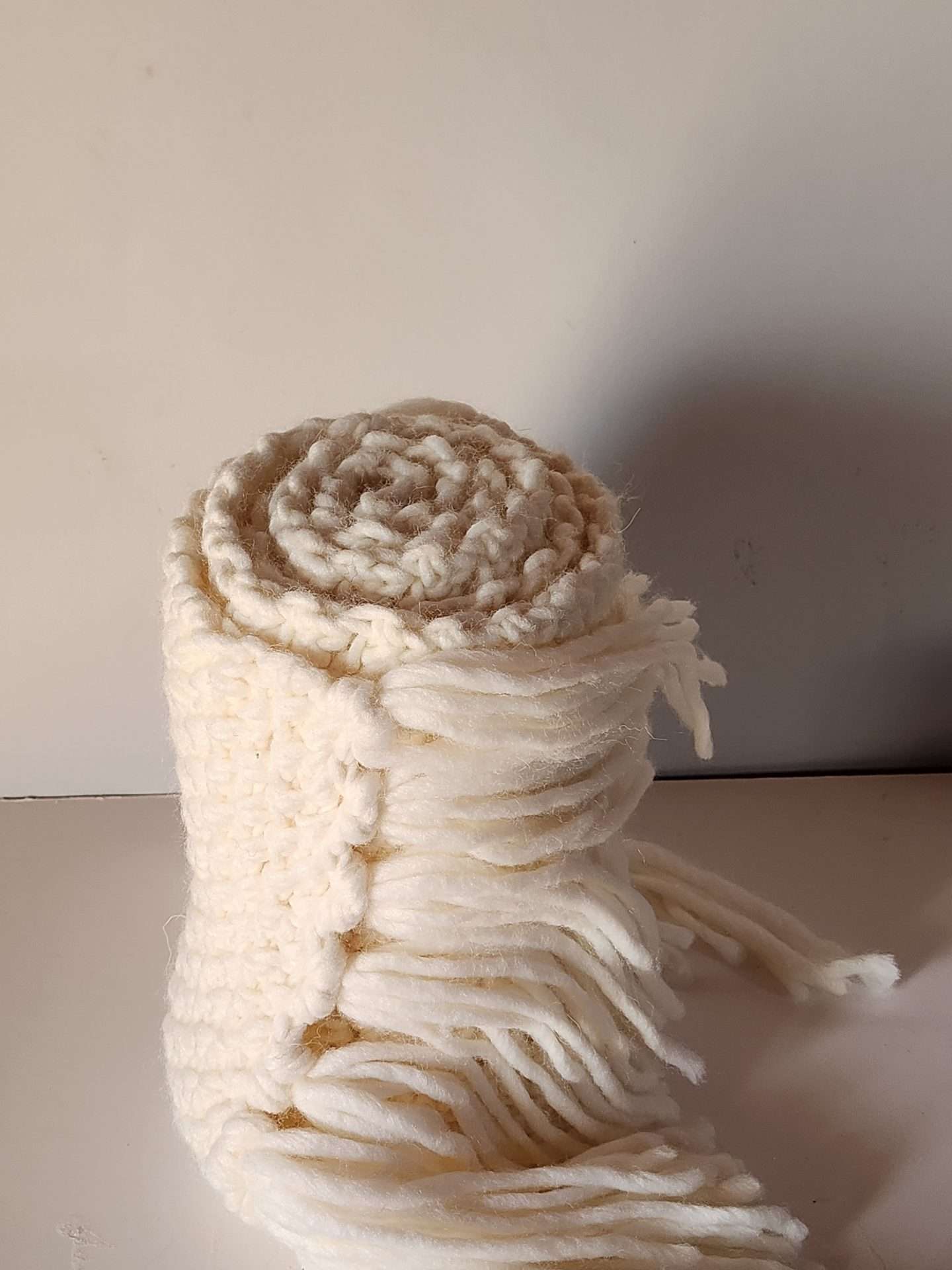 Llega otoño y luego el invierno, y nada como una abrazo calentito de lana suave, para acurrucarte en el sofá, con un buen libro y una taza de té, o para salir a caminar con tus mejores amigos, o tus mascotas por el campo o por la ciudad, esta bufanda tejida a mano tiene las medidas perfectas para cualquiera que sea tu plan, adaptala a tu outfit, y ella se adaptara a tu cuerpo.