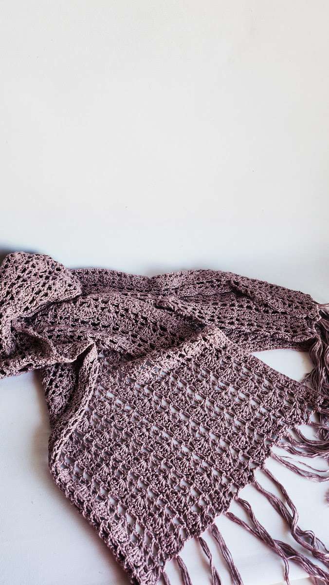Chal de color orquidea, suave al tacto y compañero ideal para las tardes frescas, tejido en hilo de bambú, a mano con tiempo y con calma,