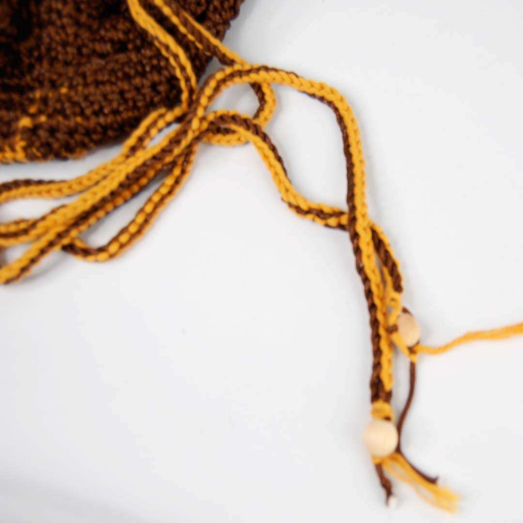 Cierre: cordón atado con bolitas de madera.