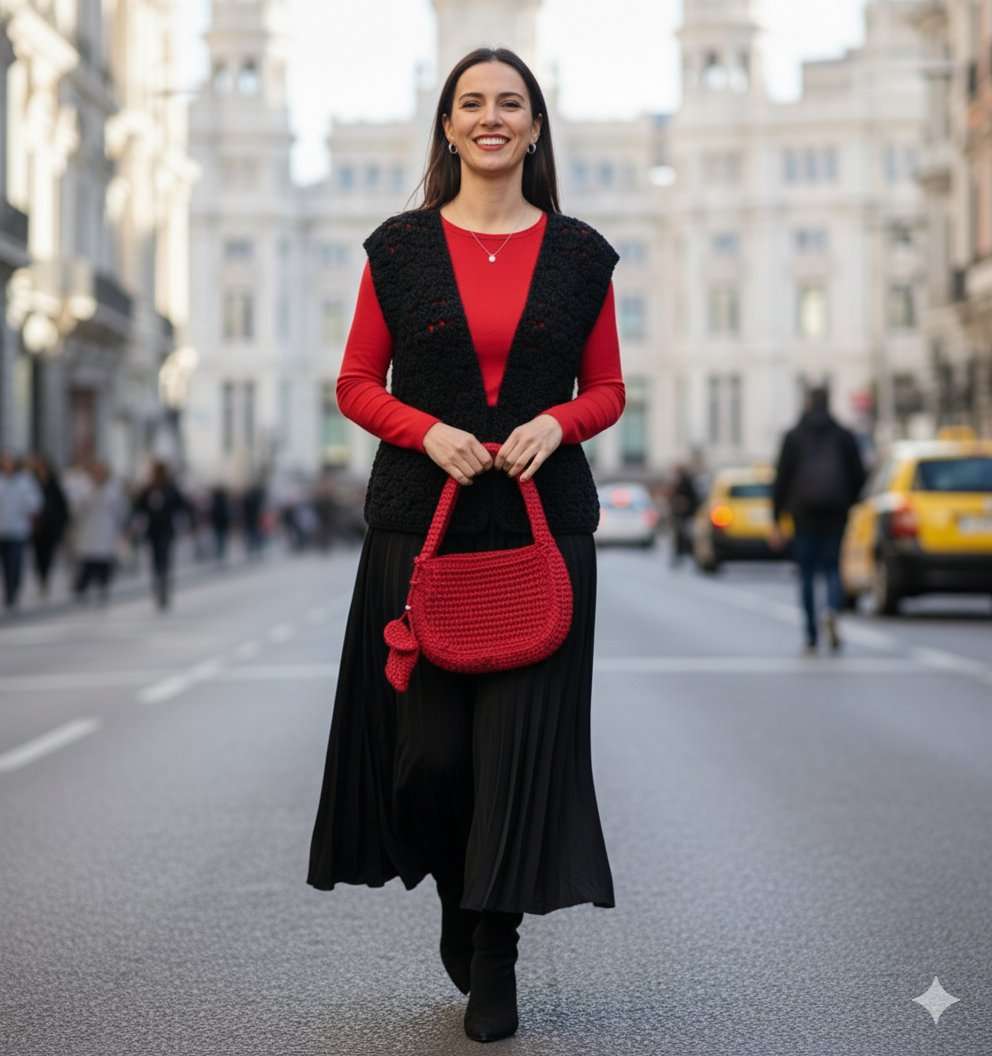 Este bolso es un accesorio hecho con habilidad y cuidado manualmente. Su color es Rojo granate, lo que lo hace llamativo y perfecto para añadir un toque vibrante a cualquier atuendo. Está hecho con materiales de alta calidad que garantizan su durabilidad. Además, al ser hecho a mano, es único y tiene detalles únicos que lo hacen especial.